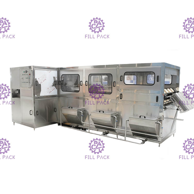 Cała linia butelkowania wody o pojemności 5 galonów obejmuje automatyczne odtłaczanie, obrotową zewnętrzną pralkę, pralkę typu L, maszyny do zmniejszania ciepła, światło kontrolne, drukarkę do kodów atramentowych.
