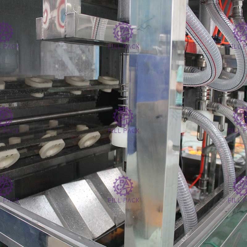 Linia butelkowania wody w beczce składa się z przenoszenia pustych butelek, automatycznego odcierania, szczotkowania zewnętrznych butelek, płukania, wypełniania, zakrywania, sprawdzania światła, kurczenia szyi, pakowania,przeniesienie pełnej butelki i palizatorCały proces jest ściśle kontrolowany.który zapewnia pełną zgodność z lokalnymi normami i przepisami ustanowionymi przez ich Departament ZdrowiaPodczas procesu napełniania, zanieczyszczenie wtórne jest ściśle kontrolowane, co czyni go ultra-czyste linią produkcyjną.uznana i niezawodna automatyczna linia produkcyjna wody galonowej dla firm i fabrykTa linia jest głównie używana do napełniania wody czystych lub wody mineralnej butelki 3 i 5 galonów.