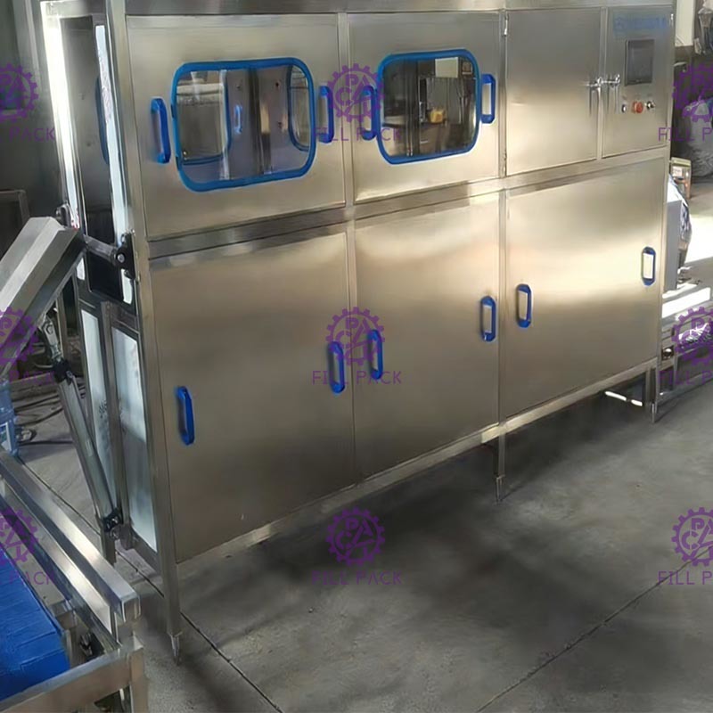 Ta linia do napełniania wodą w wiadrach jest zintegrowana z funkcjami mycia-napełniania-zakręcania słoików;