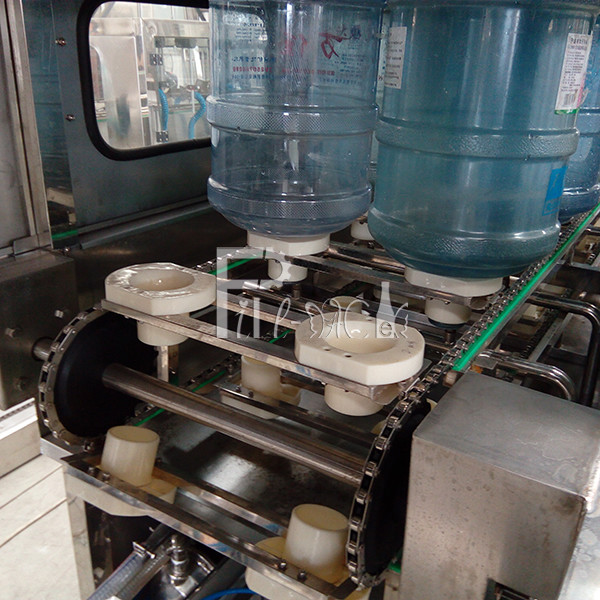 Maszyna do napełniania butelek o pojemności 5 galonów można podzielić na 3 etapy: mycie, napełnianie i zamykanie, łącznie 36 stacji roboczych, proces roboczy jak poniżej: