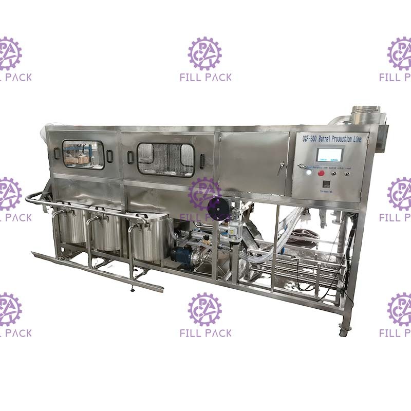 Linia do produkcji wody beczkowanej typu QGF jest podstawowym urządzeniem w linii do produkcji wody pitnej w beczkach 5 galonów. Jest to idealne urządzenie do procesu produkcji wody mineralnej, wody destylowanej i wody oczyszczonej. Maszyna wykonana jest z doskonałej stali nierdzewnej z zaletą łatwego płukania i odporności na korozję. Główne części elektryczne przyjmują produkty marki SIEMENS i OMRON. Części pneumatyczne przyjmują produkty marki AIRTAC. Zarówno wewnętrzna, jak i zewnętrzna dysza prysznicowa do mycia beczki przyjmują specjalne wyposażenie technologiczne firmy American sprayer. Maszyna działa niezawodnie i wydajnie w oparciu o zwartą konstrukcję i wysoką technologię automatyczną. Jest to w pełni automatyczne urządzenie do produkcji wody w beczkach, połączone z elementami mechanicznymi, elektronicznymi i pneumatycznymi.