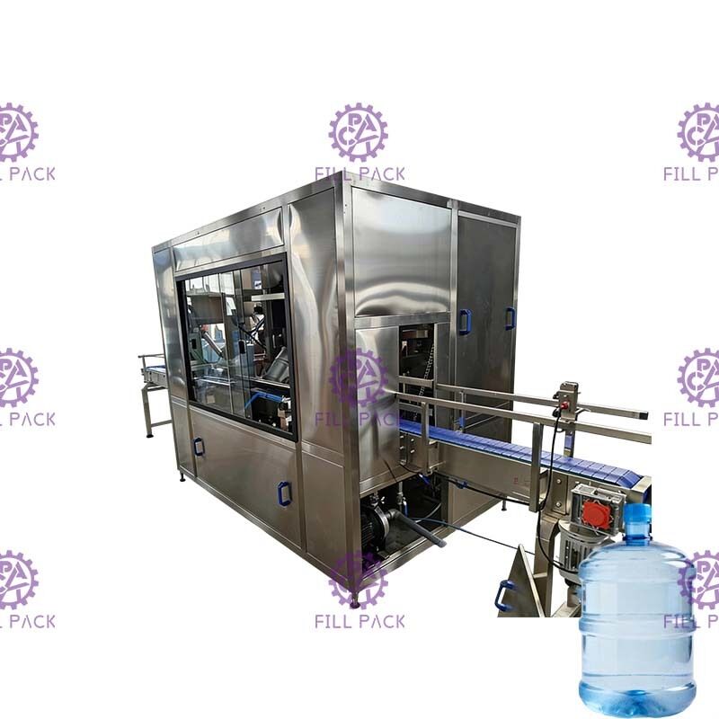 Ta automatyczna maszyna do mycia wewnętrznych i zewnętrznych szczotek do wstępnego mycia butelek galonowych jest przeznaczona do wydajnego czyszczenia butelek o pojemności 18,9L / 20L (5 galonów). Posiada obrotowe szczotki zewnętrzne i wewnętrzne, które współpracują z alkalicznym roztworem myjącym, zapewniając dokładne czyszczenie zarówno wnętrza, jak i zewnętrza butelek.
